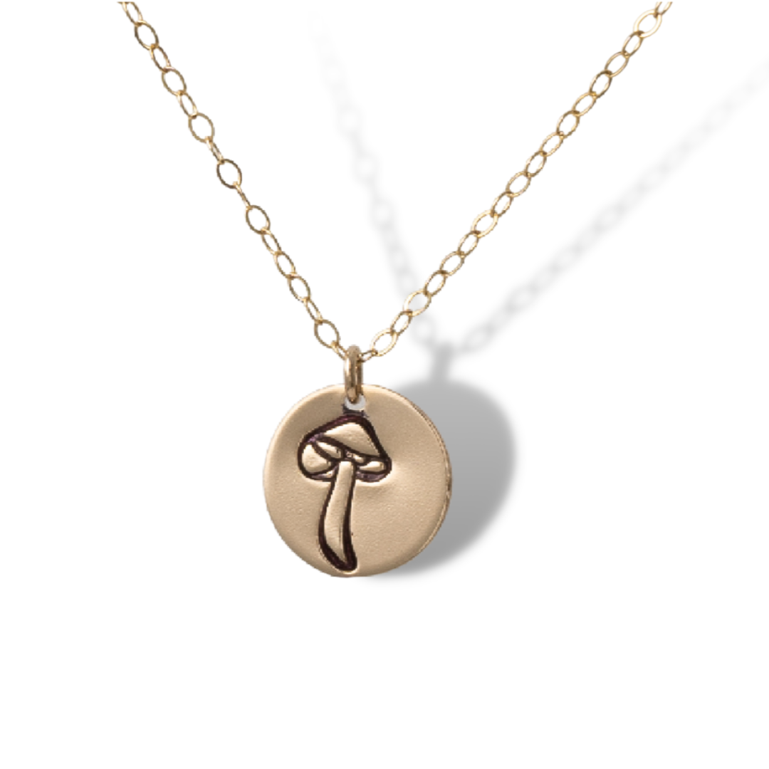 Are we guilty of being obsessed with mushrooms? Hell yes! If you're obsessed with fungi as well, this mushroom necklace is perfect for you. Our mushroom charm necklace is the perfect way to showcase your love for mushies every single day. Our mushroom necklace is available in Sterling Silver and Gold Fill, and also comes in our mushroom signet necklace, and hoop earrings. You can't ever have too much mushroom pieces in our opinion!